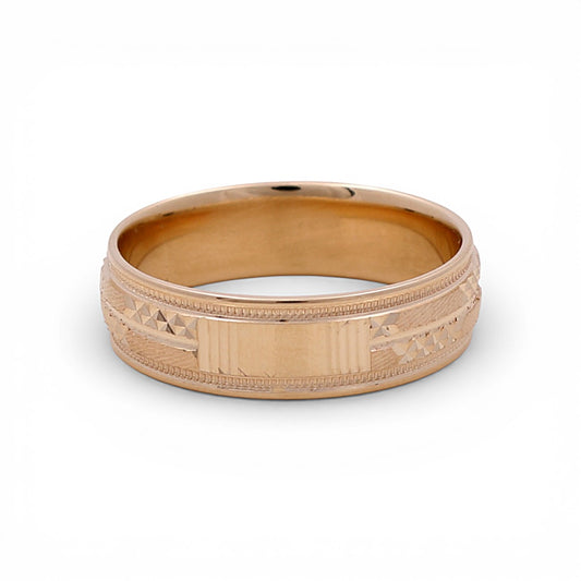 14K Yellow Gold Men’s Wedding Band with Design / Size: 10 / Weight: 5.1 GR / WBEEMWB4DS-6