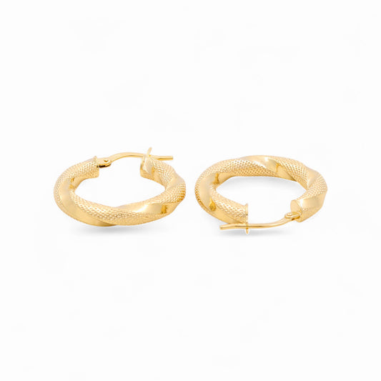14K Yellow Gold Diamond Cut Hoops Earrings / Size: 4mm X 12.5mm / Weight: 1.9 GR / DOEH4DC4X12.5-2