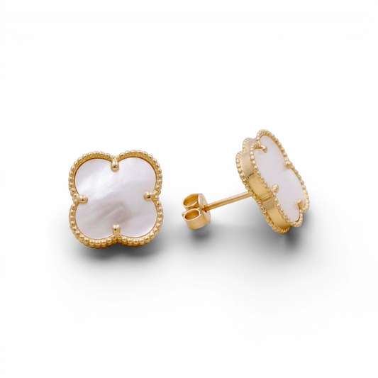 10K Yellow Gold Mother of Pearl Clover Stud Earrings / Size: 11.5MM / Weight: 2.3 GR / CQES0CLV-1