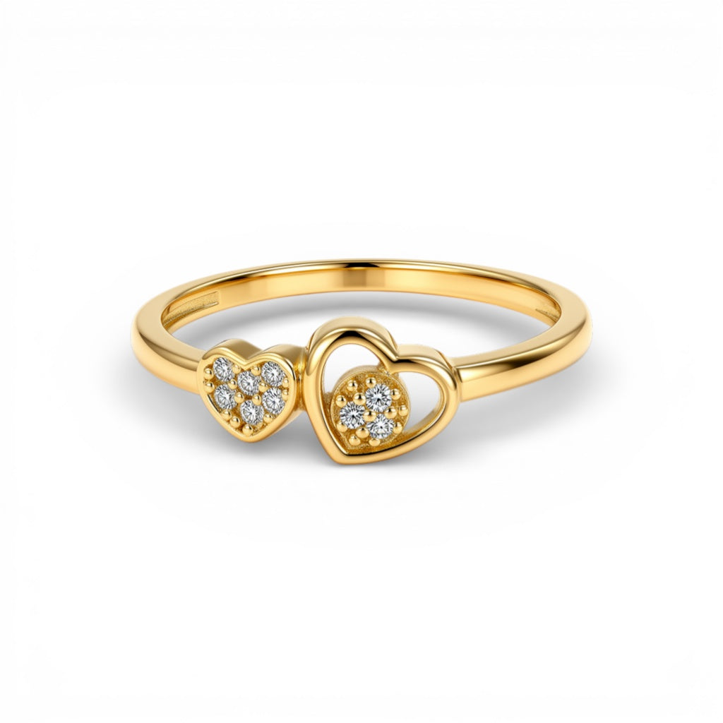 10K Yellow Gold Two Hearts Women's Ring with CZ