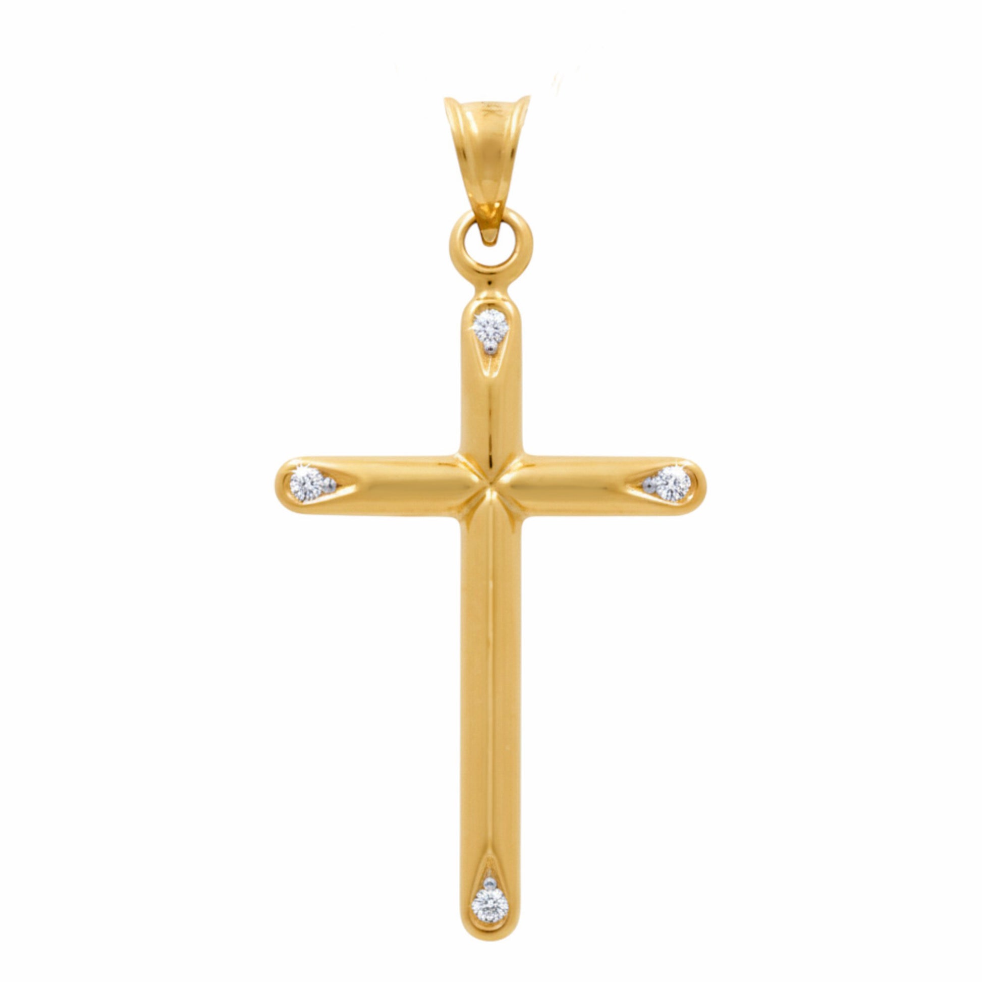 Shine with the simple, enduring beauty of this 14K Yellow Gold Cross pendant. Crafted with a sleek, high-polish finish, this piece lets the quality of the gold speak for itself. Weighing 0.9 grams, this version offers just a little more presence than the ultra-lightweight charms, while remaining delicate and comfortable enough for constant wear. It is a versatile religious symbol that looks beautiful on a short chain for a child or a longer, fine chain for an adult.