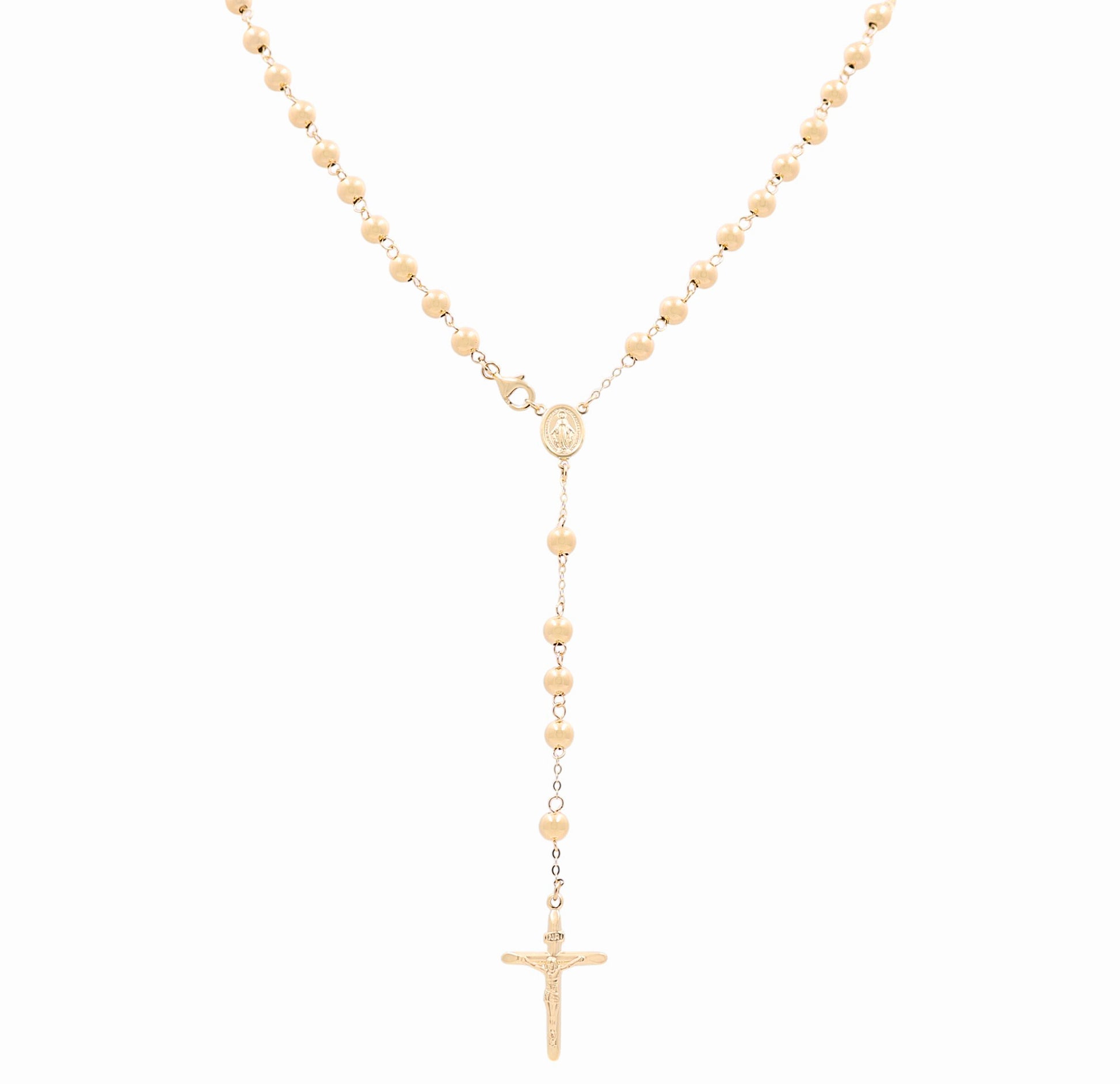 This 14K yellow gold rosary is a delicate yet powerful symbol of devotion. At 24 inches and 14.2 grams, it offers a refined, lightweight design ideal for everyday wear or meaningful gifting.