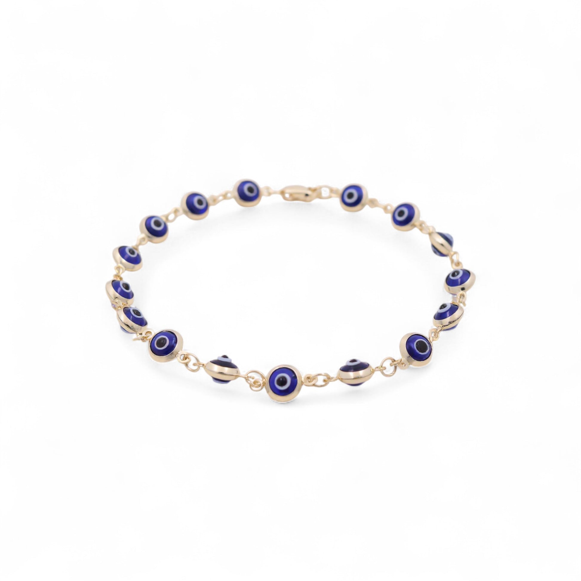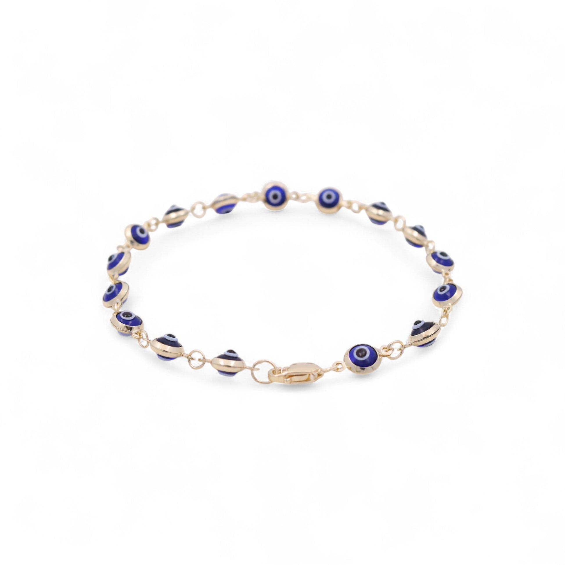 14K Yellow Gold Women's Evil Blue Eyes Bracelet / Size: 7.5" / Weight: 4 GR / BOWB4EY-2