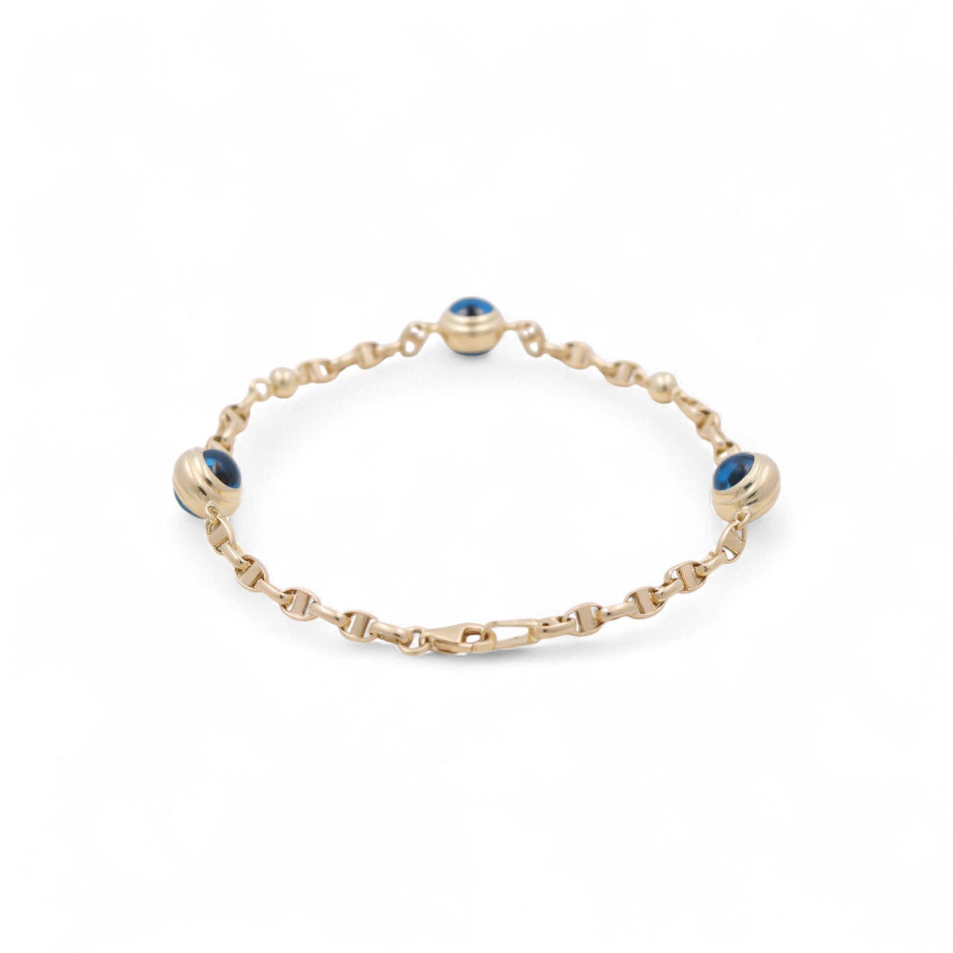 14K Yellow Gold Women's Evil Blue Eyes Mariner Bracelet / Size: 8" / Weight: 5.3 GR / BOWB4EY-6